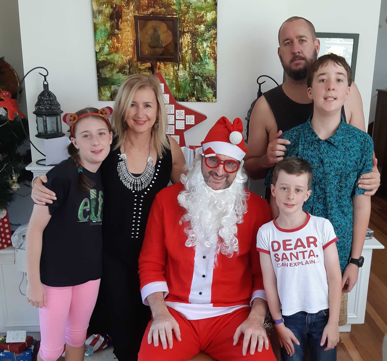 After lots of photos the present opening ceremony began. There were lots of "oos" and "ahs" for the anticipated gifts and the surprise ones. Then we said goodbye to Santa and not long after my brother returned. He said the lady had broken her arm, which is why he was gone longer than expected.